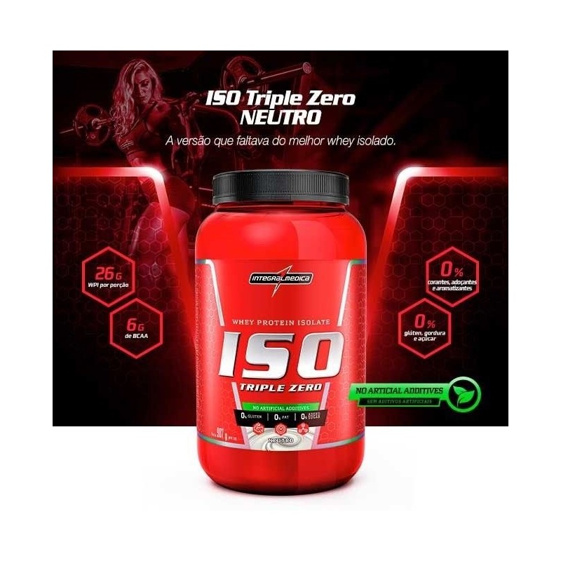 Iso Triple Zero da Integralmédica é formulado à base de WPI (Whey Protein Isolate), fonte protéica de alto valor biológico, rica em aminoácidos essenciais, incluindo os BCAA's.